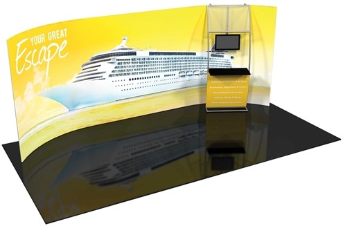 20ft Formulate Display Kit B is a unique 10′ x 20′ portable exhibit for the first time exhibitor or experienced. The Formulate Display line includes an eye-catching graphic mural that’s a way to set the perfect back-drop for your trade show booth. This portable display features a seamless fabric mural graphic printed using the dye sublimation print process. The aluminum hardware is composed of quick snap-together aluminum tubing pieces that break-down for easy packing and shipping. The graphics can easily be switched out to create a new look from one exhibit to the next. The display frame is built to be premium heavy-duty, yet lightweight, aluminum that costs less to ship than most 10×20 trade show displays.