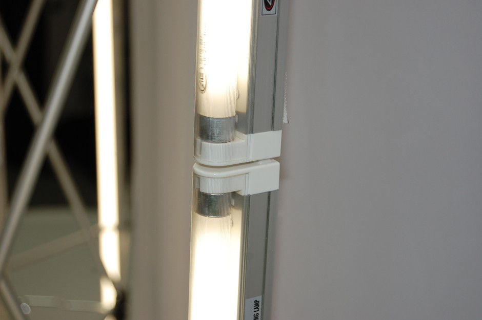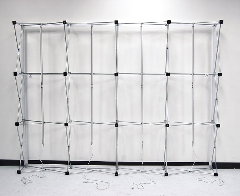 Make an impact at your next trade show with our 10ft VBurst Backlit Pop Up Rental. The fabric lightbox graphic mural comes attached to the popup frame, and in less than ten minutes you’ll be ready to exhibit your vibrant lightbox fabric back wall booth. This trade show rental gives first-time or infrequent exhibitors access to a simple, yet professional expo look. Set up is very user-friendly, as the high-res TriFab graphic comes attached to the V-Burst frame and lights effortlessly connect and simply hang on the pop up frame. The graphics are HD dye-sublimation printed and custom, giving no impression that the backlit lightbox booth is a temporary rental. The VBurst Rental Pop Up offers a high-end look, as it is the only backlit pop up that does not show hub shadows in the center of the graphic. The quick setup and beautifully simplistic illuminated look are ideal benefits for amateur exhibitors, making the VBurst Backlit Pop Up a perfect lightbox booth rental choice for your next expo.