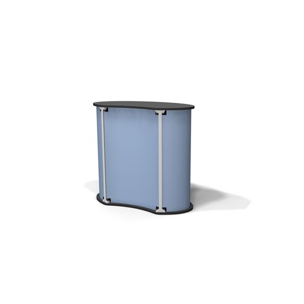 This Exhibit Line counter is a great way to break out of the pack and give your booth its own look. The counter top has several finishes available and the main panels can be printed to customize the counter even more. The entire system can be assembled using thumb screws (no tools are required in the assembly of this display).