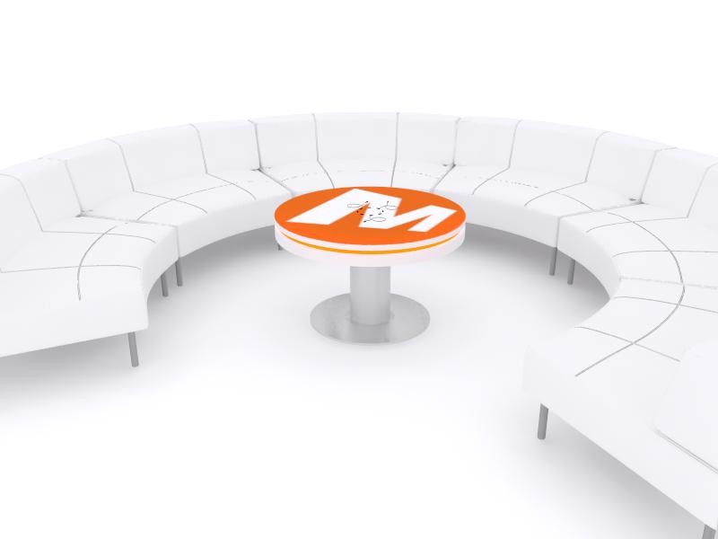 The Event Charging Coffee Table serves as a multi-functional trade show accessory. Boasting 8 USB ports and adjustable LED accent lighting, it’s likely to be the most utilized element at your next event! Draw a crowd to your booth, and keep them there, with a simple solution to a common problem. Ultra-portable, the trade show charging workstation has a modern design and adhesive graphic print options. Rental options are also available, contact us for more information!