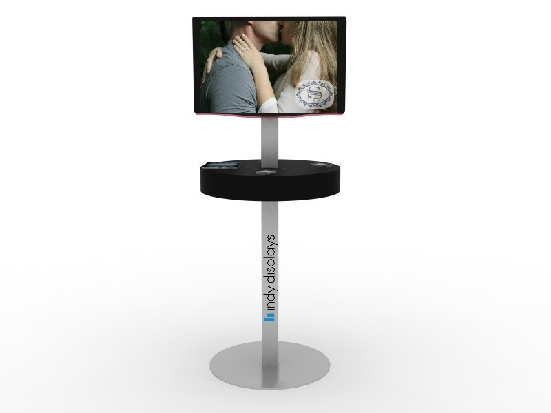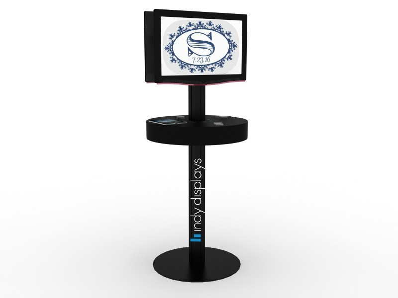 The Event Monitor Charging Kiosk serves as a multi-functional trade show accessory. Boasting 8 USB ports and a double monitor mount, it’s likely to be the most utilized element at your next event! Draw a crowd to your booth, and keep them there, with this simple solution to a common problem. Ultra-portable, the trade show charging workstation has a modern design and adhesive graphic print options. Rental options are also available, contact us for more information!