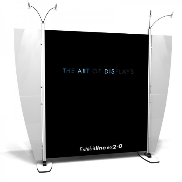 The structure of this custom modular display is made from custom modular aluminum extrusions. The structure of the Exhibit Line system gives your company a trendy modern look. The ex2.0 display kit includes 4 halogen stem lights. The entire trade show booth can be packaged in one 48.25T shipping case (47″x23.5″7″). Total weight of the exhibit booth is 56 lbs.
