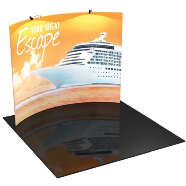 The Formulate H2 10ft tension fabric display offers a unique look for your trade show booth. The horizontal frame offers a simple set up solution along with a high quality tension fabric graphic that simplly slides over assembled frame. The tension fabric mural graphic is printed using the dye sublimation process. Viewable graphic size is 114″h x 95.5″w. The Formulate H2 offers a display lighting package.