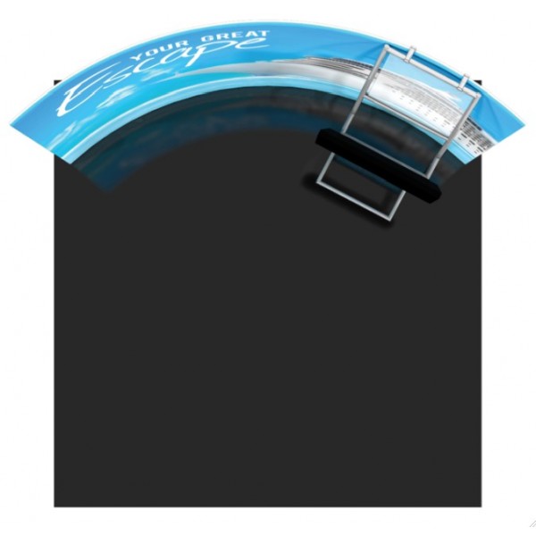 The Formulate H7 10ft tension fabric display offers a unique look for your trade show booth. The horizontal frame offers a simple set up solution along with a high quality tension fabric graphic that simplly slides over assembled frame. The tension fabric mural graphic is printed using the dye sublimation process. Viewable graphic size is 114″h x 95.5″w. The Formulate H7 offers a stand off frame that includes 1 monitor mount attachment, and additional area for graphics. This portable trade show display gives you the combinate of a 10×10 backwall and trade show kiosk all in one!