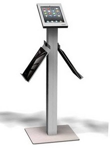 The iPad.S1.3 Kiosk Stand is a cleaning looking iPad kiosk stand that allows you to interact with an iPad, while also presenting some take away material on literature shelves. It has a modern design, is quick and easy to set up, and is light weighing in at 17 lbs. As a security feature, this product comes with a lockcase which is accessible using a key.