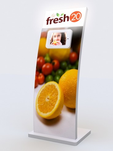 The Portable iPad Kiosk with Two-Sided Lightbox is brand new display design that holds any iPad version or the Surface 2. This trade show kiosks is unique in many ways, starting with the backlit graphic header that’s double sided. The modern sleek design is sure to impress any show attendee and could also be used as an effective retail kiosk. The iPad Kiosk is built using aluminum extrusions, heavy laminate base, tension fabric dye sublimation graphics, and LED lighting Be the first exhibitor to own this remarkable trade show kiosk.