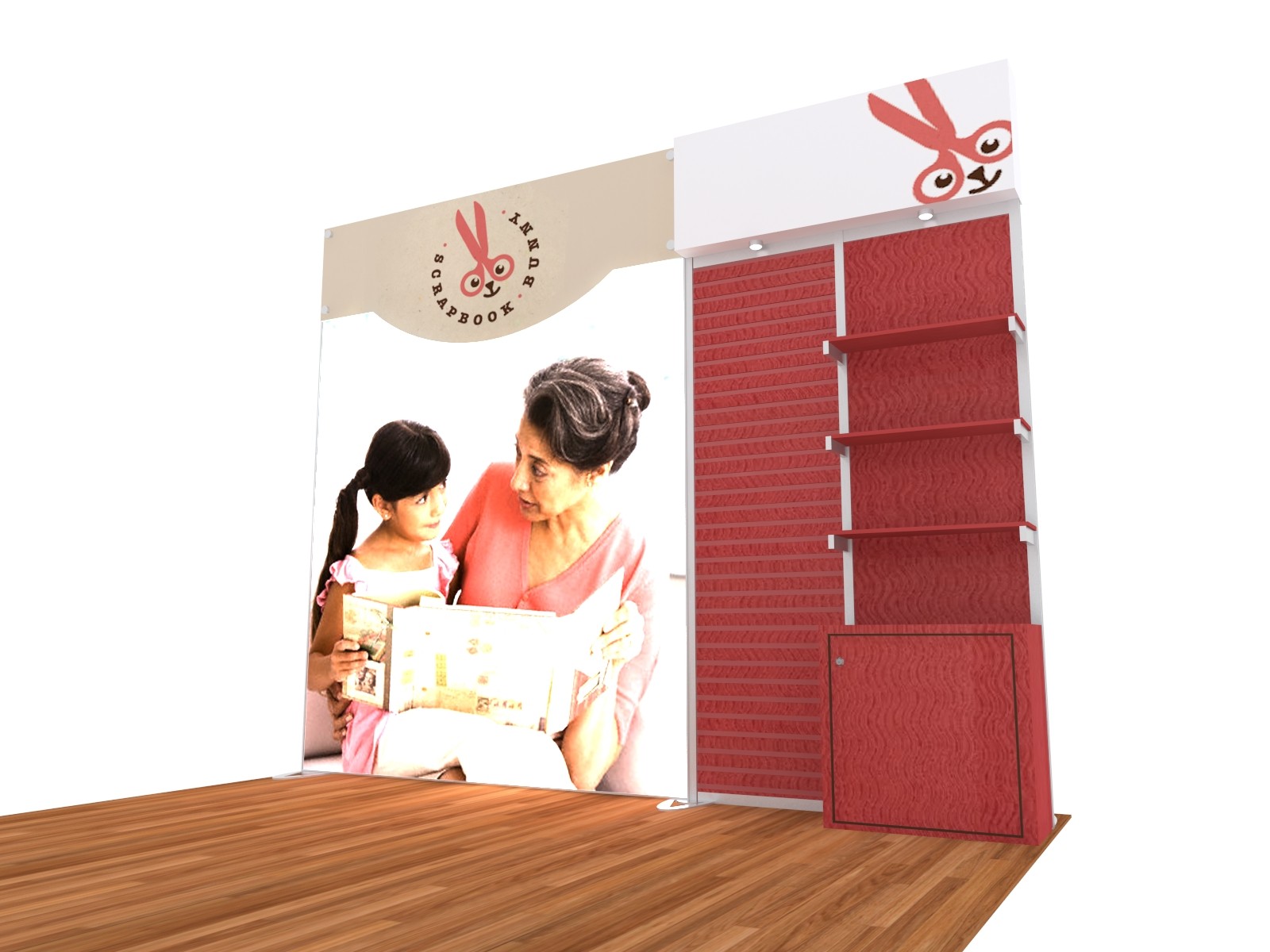 Looking to make a lasting impression at your next trade show? Our 10’ x 10′ SEGUE Hybrid Backlit Display VK-1335 is an exhibitor’s perfect choice! Backlit displays are the fastest growing trend in the trade show industry and this Segue display is top-of-the-line in backlit excellence. Silicone Edge Graphics, the gold standard for backlit graphics, make set up easy and offer a professional, stream-lined look. In addition to the stunning backlit wall, a slatwall provides shelving space for showcasing and locking storage. A direct print header gives more space to convey your message to potential clients. The bold and pragmatic display can even be expanded to a 20’ exhibit.