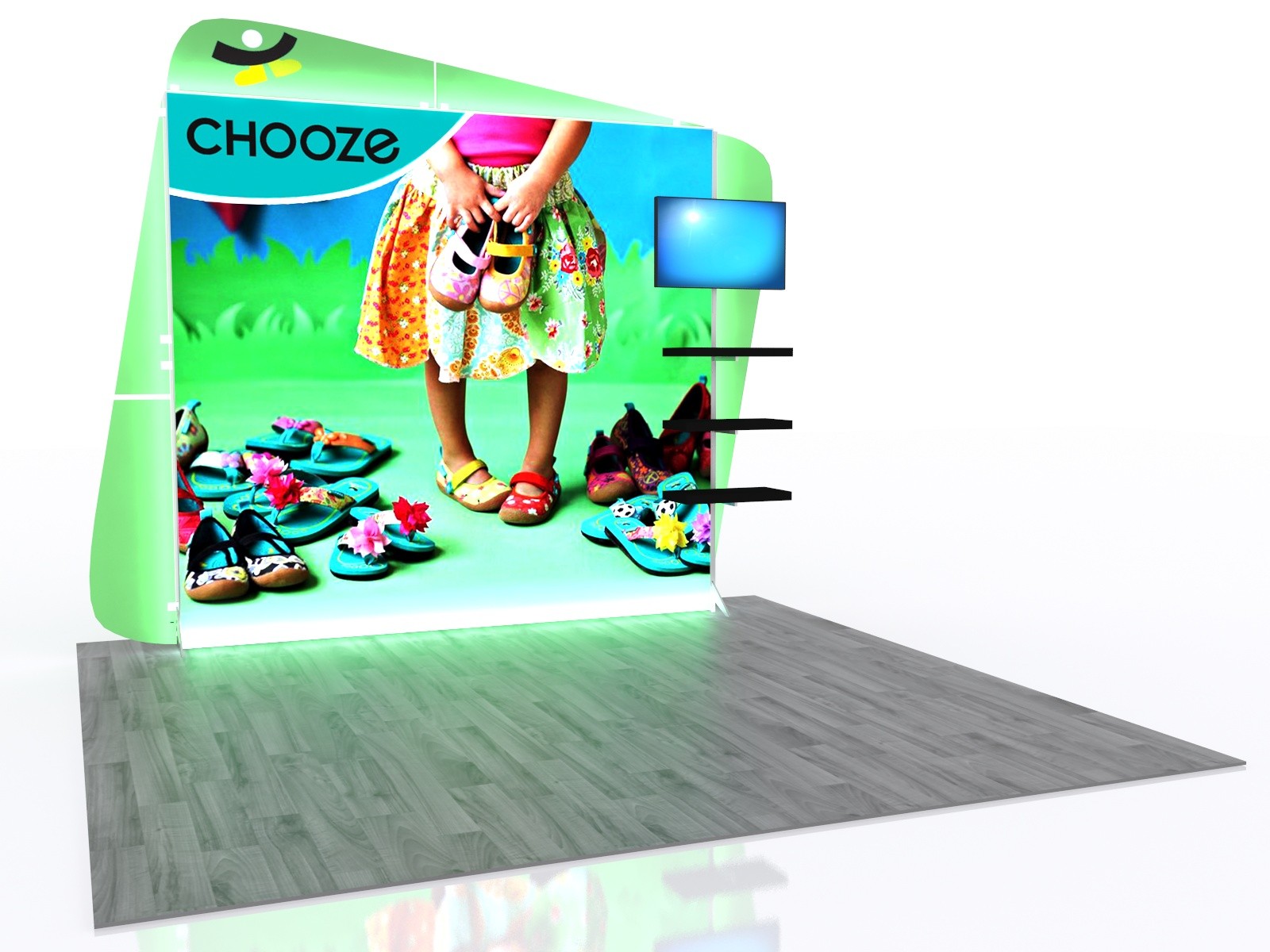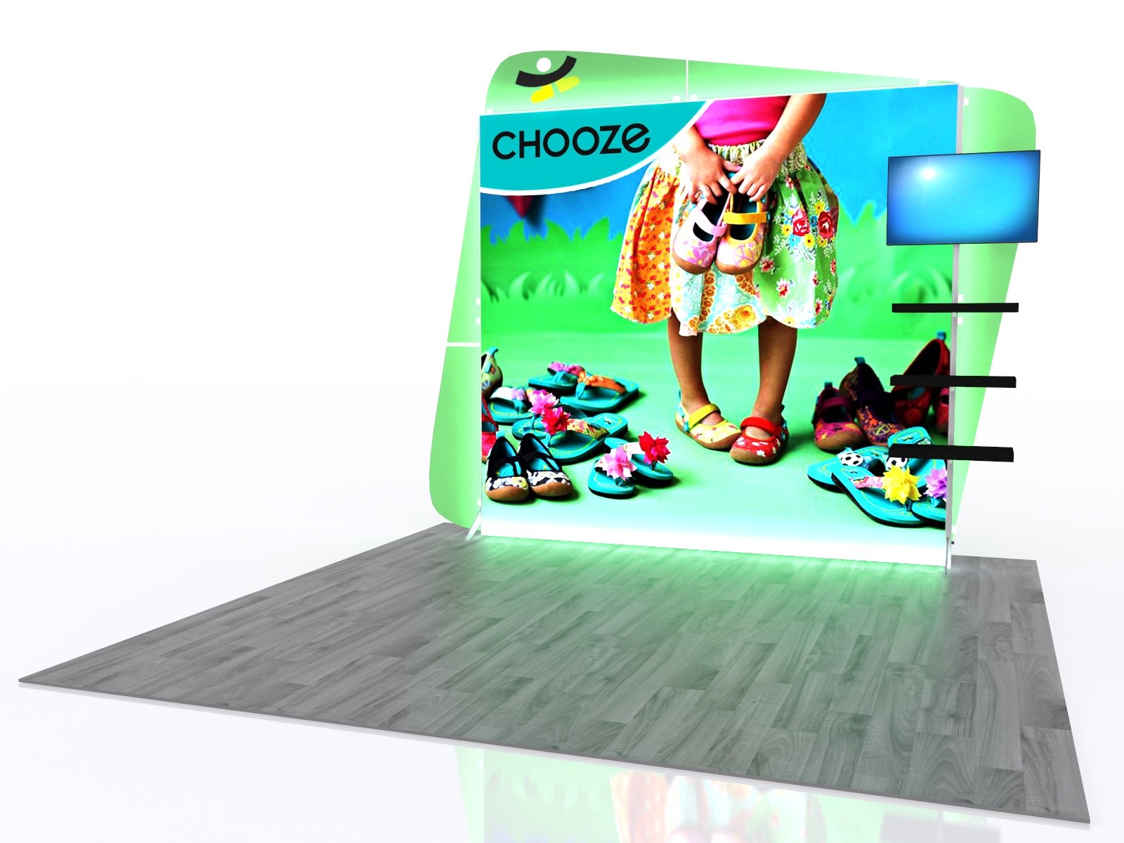 Segue Hybrid Backlit Display VK-1960 will make an impact at your next trade show! Backlit displays are the fastest growing trend in the trade show industry and this Segue display is top-of-the-line in backlit excellence. This design includes a monitor mount for presentations and videos. Floating shelves are attached to the backwall and provides space for literature, prototypes, and promotional items. Modular design, silicone edge graphics, and lightweight aluminum hardware combine to create a perfect option for a 10’ x 10’ trade show booth space. LED lighting and high-quality graphics will beautifully showcase your message.