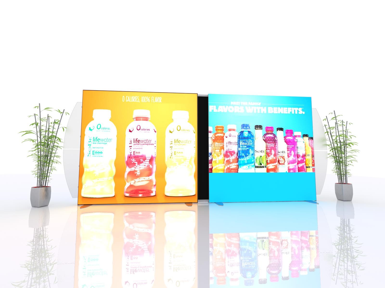 Give your product, brand, or company an opportunity to stand out with our 10′ x 20′ Segue Hybrid Backlit Display VK-2940! Backlit displays are the fastest growing trend in the trade show industry and this Segue display is top-of-the-line in backlit excellence. The dual 10’ long backlit walls utilize attached SuperNova™ LED lights that eliminate hot-spotting on the graphics, providing a seamless, professional look. Silicone edge graphics allow for a streamlined look to beautifully display your message and make it stand out, as well as easy set-up. The display kit is also able to reconfigure in order to accommodate a 10’ x 10’ booth space.