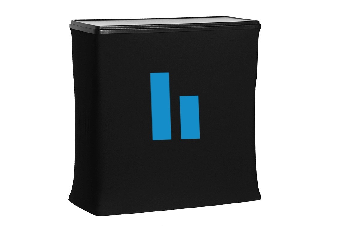 Our Tension Fabric Case-to-Counter is an affordable, multi-use option for trade show exhibitors. The portable display booth accessory can accommodate most 8ft to 10ft tension fabric displays, as well as banner stand pop up walls. The lightweight, wheeled case makes storage, shipping, and transportation easy, as an entire 10’ x 10’ tension fabric booth kit can fit inside! Twin buckle straps wrap around the case during shipping to guarantee the case remains closed. After unpacking, the case quickly converts to a tension fabric trade show counter. The bottom and top sections of the case are connected by four aluminum poles, creating a sturdy, functional structure. A full color, dye sublimation fabric graphic stretches over the hardware, completing the counter. The versatile product also provides a storage solution with the addition of a heavy-duty zipper on the back of the graphic to allow fast and easy access. The high-quality graphic prints can be matched to any new or existing trade show displays, making the counter an excellent addition to any exhibitor booth space. Use the Tension Fabric Case-to-Counter to make an impact at a trade show, but also for a convenient and ultra-portable storage and shipping solution!